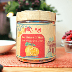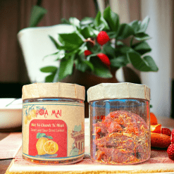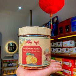 Quy cách đóng hộp mứt vỏ chanh cam thảo xí muội – thương hiệu nổi tiếng Hoa Mai